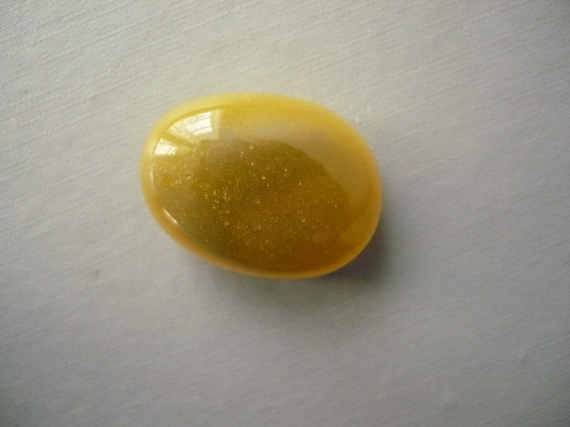 Tromlovaný kámen - kočičí oko (ulexit). Rozměr 27 x 21 x 15 mm. Tento kamínek je syntetický, ale velmi efektní.