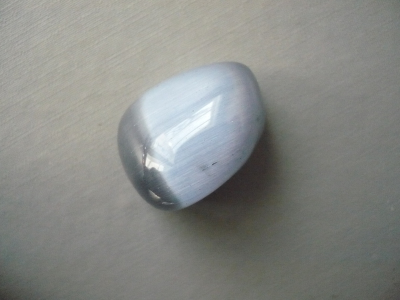 Tromlovaný kámen - kočičí oko (ulexit). Rozměr 27 x 19 x 17 mm. Tento kamínek je syntetický, ale velmi efektní.