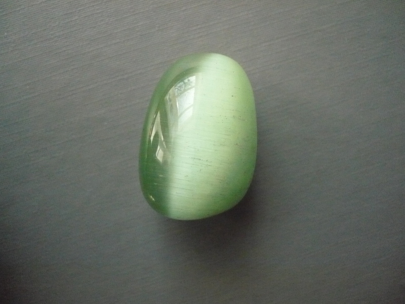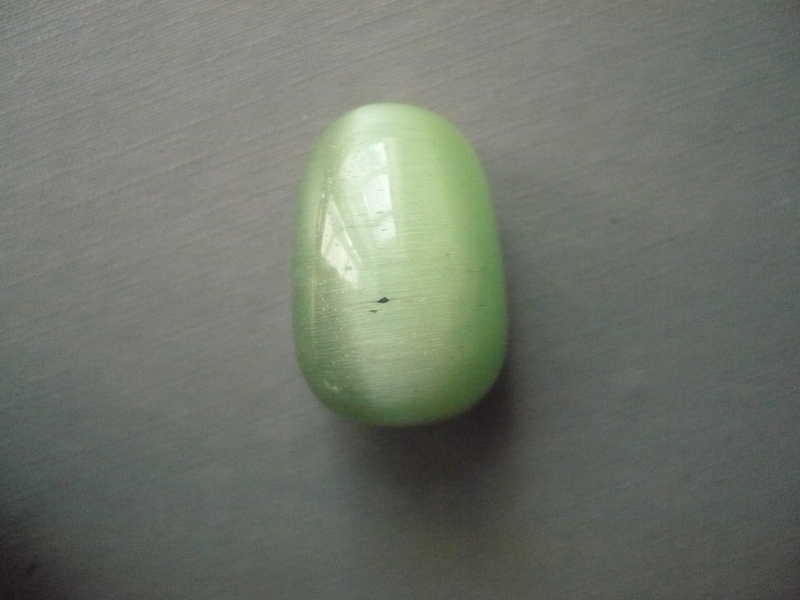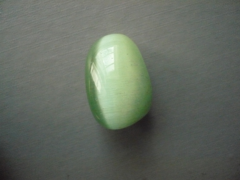 Tromlovaný kámen - kočičí oko (ulexit). Rozměr 25 x 18 x 17 mm. Tento kamínek je syntetický, ale velmi efektní.