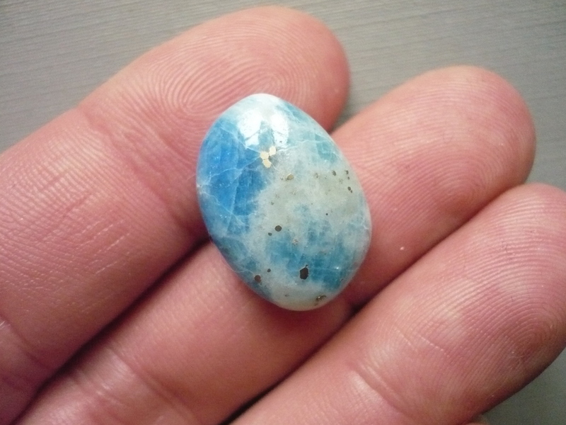 Tromlovaný kámen - afghanit. Rozměry 20 x 14 x 9 mm. Afghanit je druh sodalitu, který změnou barvy reaguje na UV světlo. Původ Afganistán.
