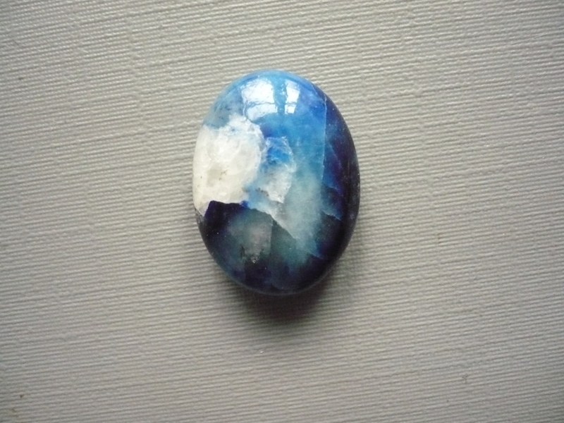 Tromlovaný kámen - afghanit. Rozměry 19 x 14 x 7 mm. Afghanit je druh sodalitu, který změnou barvy reaguje na UV světlo. Původ Afganistán.