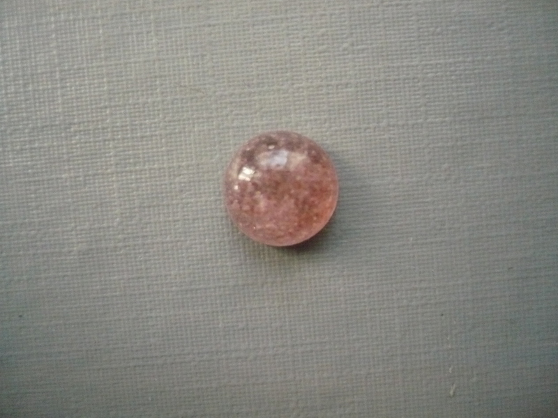 Kabošon - jahodový křemen. Rozměry 9 x 5 mm. Přírodní kámen se šupinkami příměsí, hematitu.. Vhodné pro cínování, obšívání... Původ Afrika.