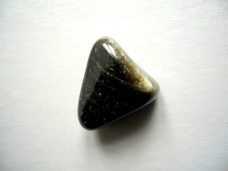 Tromlovaný kámen - zlatý obsidián. Rozměry 27 x 22 x 17 mm. Naleziště Mexiko. Jsou jako hypersten, obsidián zlatý má ale zlaté sametové efekty.