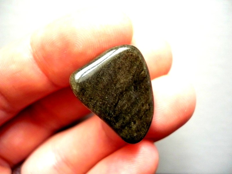 Tromlovaný kámen - zlatý obsidián. Rozměry 23 x 19 x 15 mm. Naleziště Mexiko. Jsou jako hypersten, obsidián zlatý má ale zlaté sametové efekty.