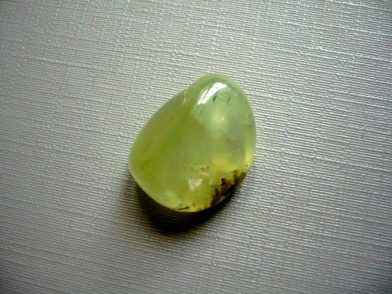 Tromlovaný kámen - prehnit s epidotem. Rozměry 19 x 15 x 11 mm. Původ Čína.