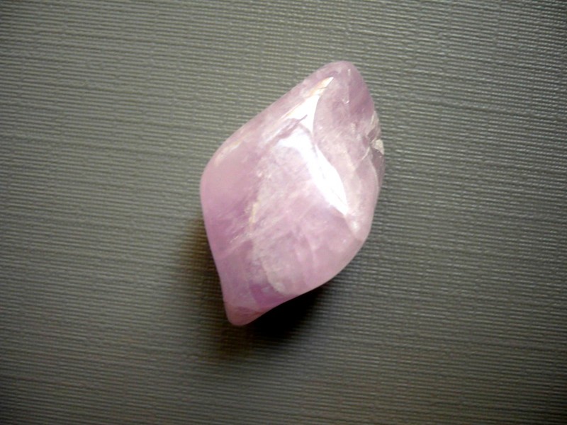 Kunzit tromlovaný (odrůda spodumenu). Původ Pákistán. Rozměry 26 x 14 x 9 mm. Fialový kunzit - představuje nebe a nekonečno, je vhodný při psychických onemocněních, při problémech se srdcem, uklidňuje.