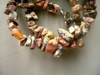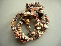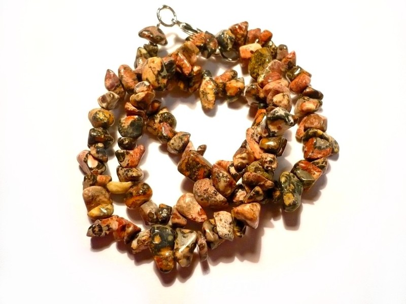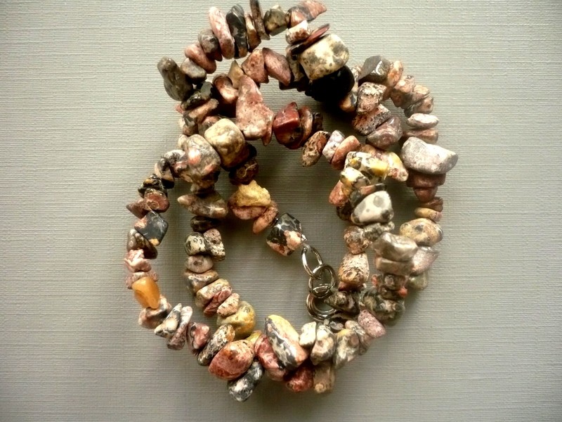 Minerální zlomky - jaspis leopardí v délce 45 cm, navlečeno na šňůře. Každý zlomek má svou originální kresbu.