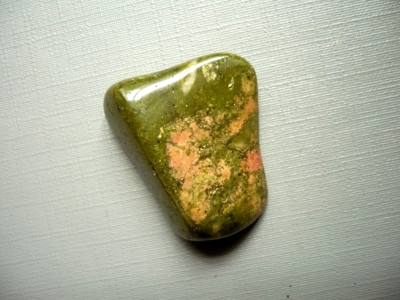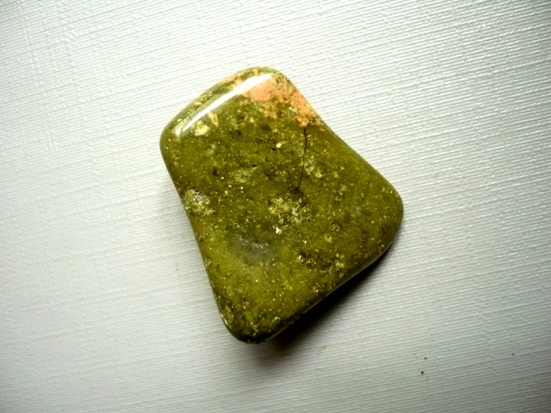 Tromlovaný kámen - unakit. Rozměry 27 x 24 x 10 mm. Vhodný pro cínování, wire-wrapping..