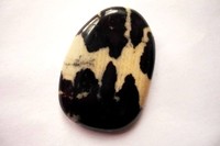 Tromlovaná placka - jaspis zebra. Rozměry 42 x 30 x 8 mm. Kupujete vyfocený kousek. Leštěné. Vhodné pro cínování, obšívání..