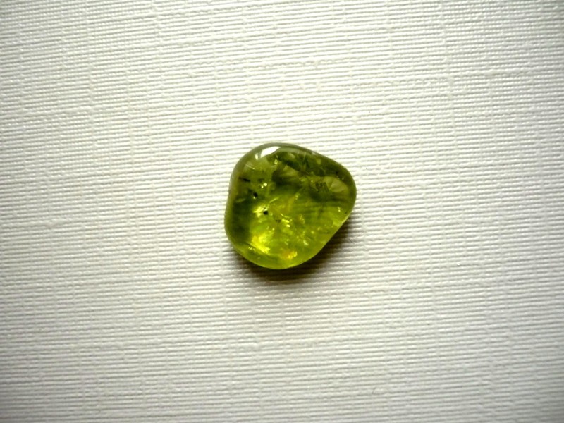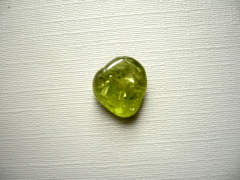 Tromlovaný kámen - olivín (peridot). Rozměry 11 x 10 x 5 mm. Původ Arizona. Kupujete vždy vyfocený kus.