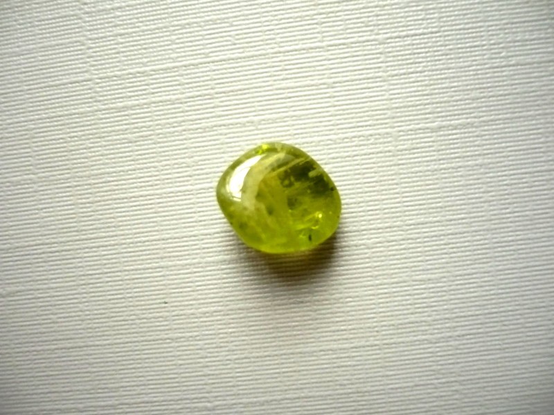 Tromlovaný kámen - olivín (peridot). Rozměry 9 x 9 x 5 mm. Původ Arizona. Kupujete vždy vyfocený kus.