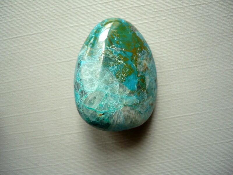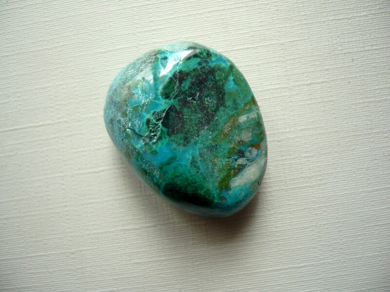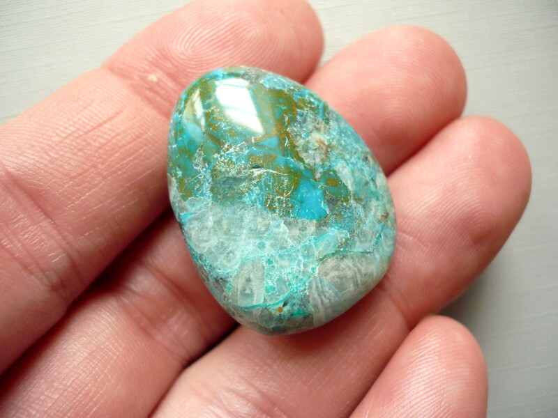 Tromlovaný kámen - chryzokol extra. Rozměry 29 x 23 x 14 mm. Tyto kameny jsou moc pěkné, výběrové. Původ Peru.
