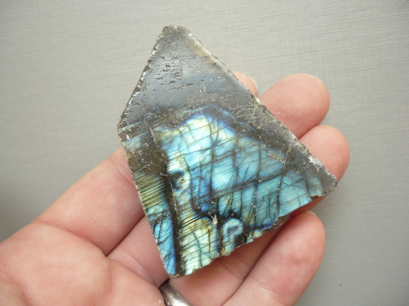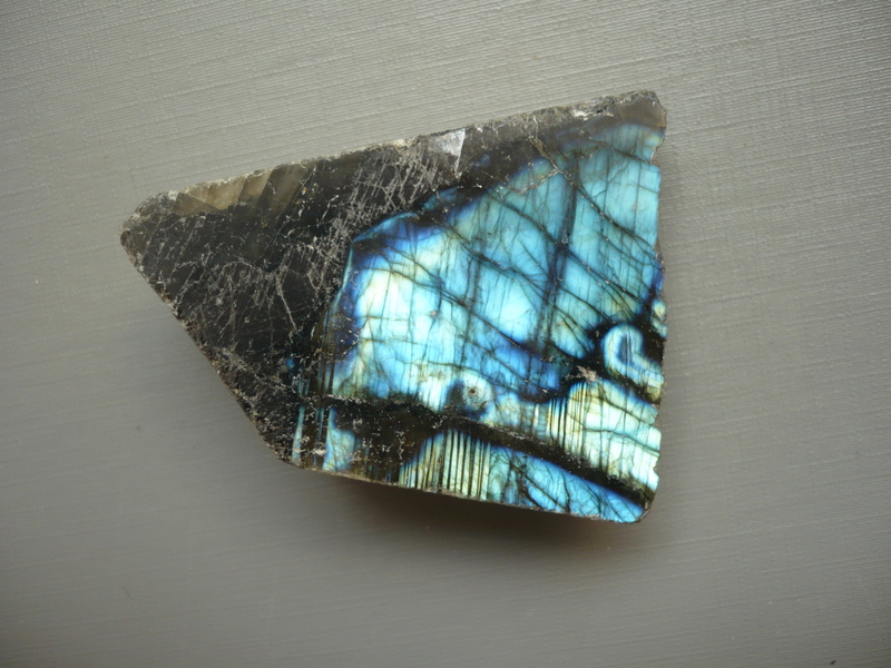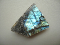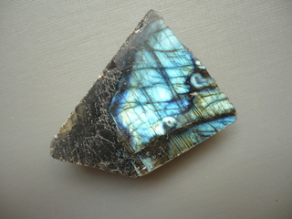 Labradoritový půlbrus, rozměry 63 x 50 x 17 mm. Jde o surovinu, broušenou a vyleštěnou z jedné strany. Vhodné do sbírek, jako dekorace, či k další tvorbě.