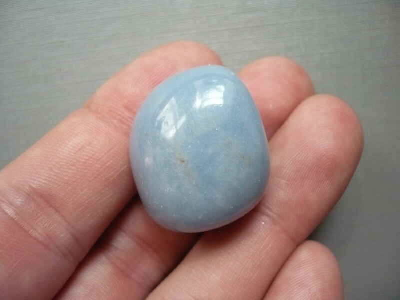 Tromlovaný kámen - angelit. Rozměry 26 x 22 x 18 mm. Kupujete vyfocený kousek. Leštěné. Vhodné pro cínování, wire-wrapping.. V nabídce také korálky a placky angelitu.