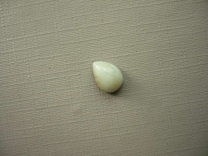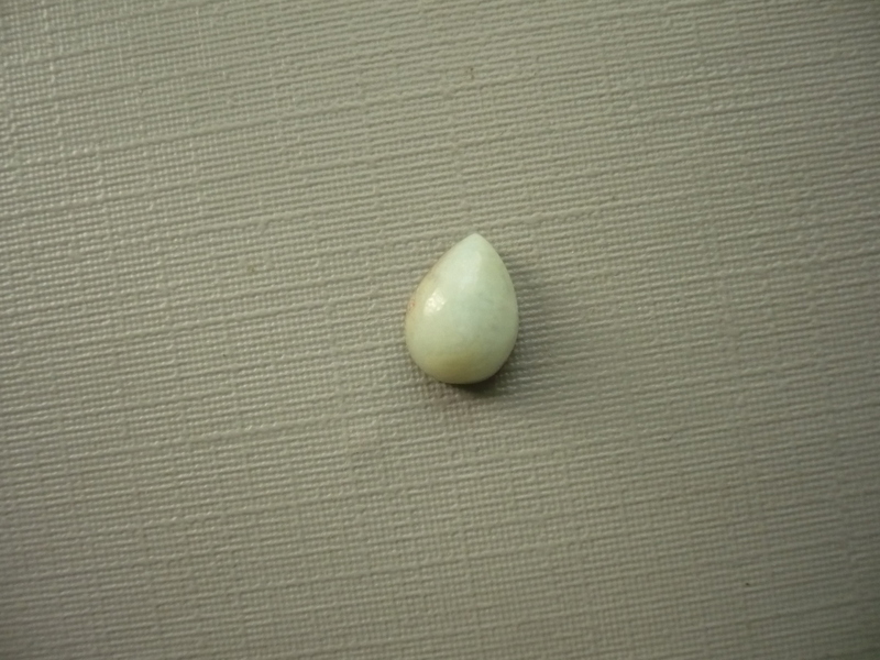 Kabošon - larimar. Rozměry 9 x 6 x 3 mm. Naleziště Dominikánská republika. Patří do skupiny pektolitů, mají krásné modré zbarvení připomínající moře. Larimar - název odvozen od slova "Mare" - moře a začátku jména Larissa, dcery obejvitele Mendeze.