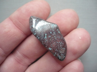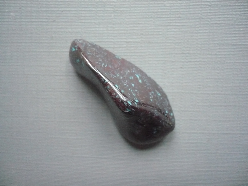 Tromlovaný kámen - shattuckit. Rozměry 33 x 15 x 13 mm.