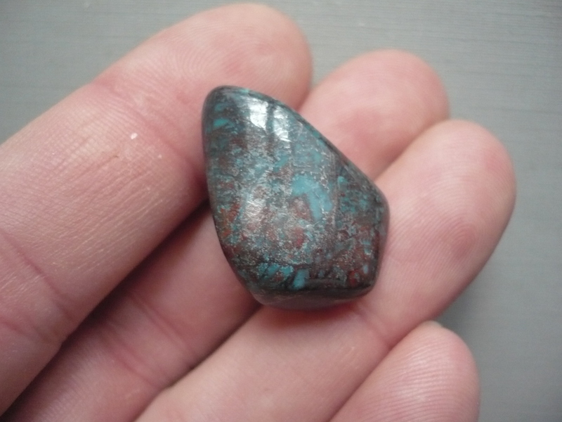 Tromlovaný kámen - shattuckit. Rozměry 27 x 18 x 15 mm.