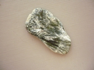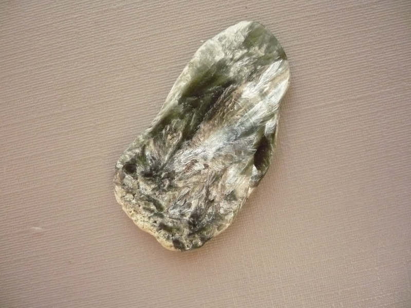Tromlovaný kámen - serafinit. Rozměry 35 x 20 x 4 mm. Původ Rusko. Také se mu říká "andělská křídla".