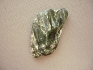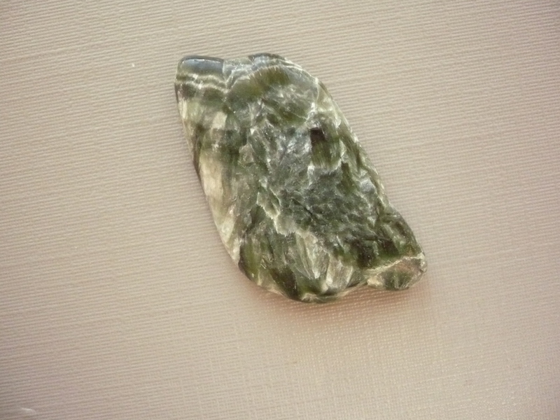 Tromlovaný kámen - serafinit. Rozměry 35 x 18 x 5 mm. Původ Rusko. Také se mu říká "andělská křídla".