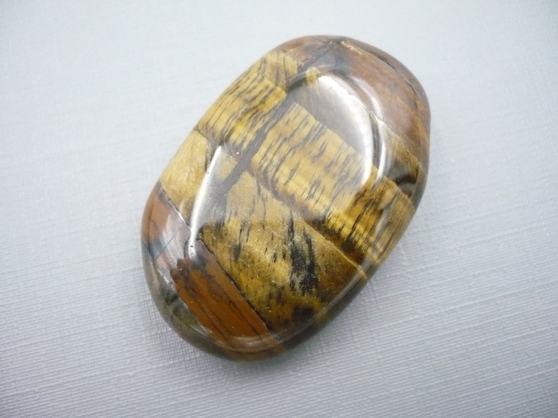 Tromlovaná placka - tygří kůže. Rozměry 42 x 27 x 12 mm. Kupujete vyfocený kousek. Leštěné. Vhodné pro cínování, obšívání..