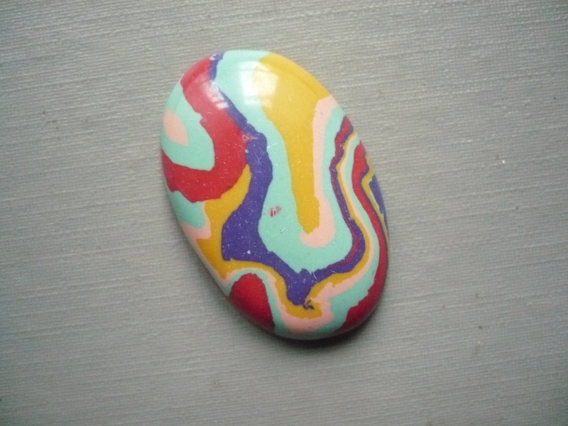 Kabošon - fordit. Rozměry 30 x 20 x 6 mm. Vhodné pro cínování, obšívání... Původ USA. Cena za tento konkrétní kus. Jsou opravdu tak krásně a jasně barevné jako na fotu. Fordit (detroitský achát) - někdy je zaměňován s calsilicou, která je původem z Mexika. Fordit je vlastně uměle vytvořený pevný a odolný šperkový kámen, v poslední době velmi oblíbený. Jedná se vlastně o vrstvy autolaku z automobilek Ford po stříkání karoserií aut. Nosí v sobě kousek historie, pro jeho vznik muselo automobilkou projít několik desítek automobilů. Šikovné lidské ruce brzy napadlo toto vybrousit, vznikají tak překrásné tvary do šperků. Fordit lze bez problému ocínovat.