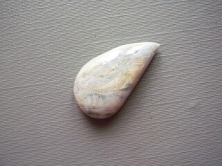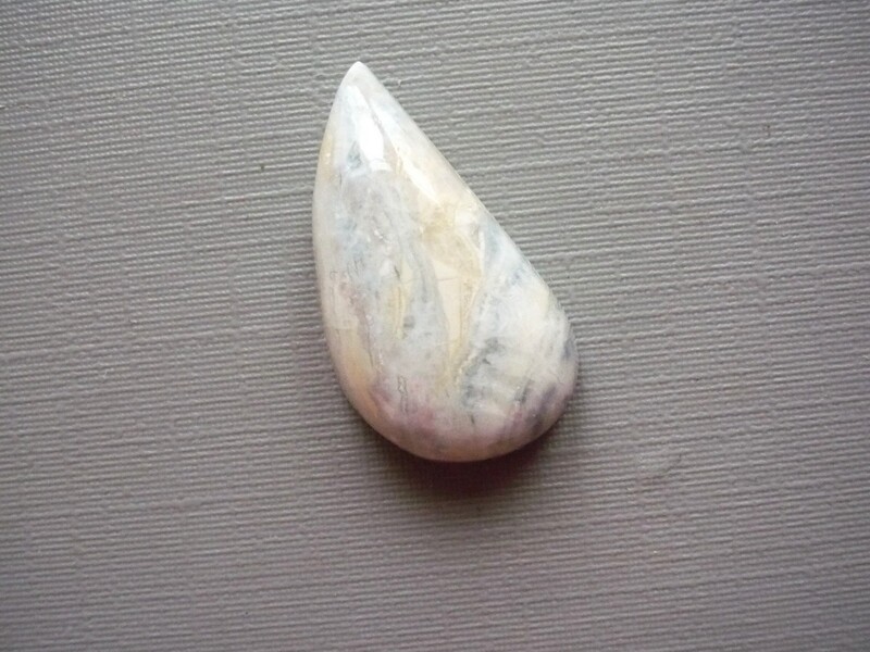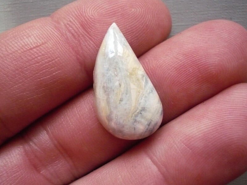 Kabošon - Scheelit modrý. Rozměry 24 x 13 x 7 mm. Vhodné pro cínování, obšívání... Kupujete tento konkrétní kus. Původ Mexiko. Scheelit byl objeven nedávno. Minerál jako takový je znám již delší dobu, ale jeho modrá varianta je známá poměrně krátce. Jeho vzhled připomíná vlnky nebo krajku. Jedná se o rudu wolframu, minerál wolframanu vápenatého. Modrý scheelit sestává z více druhů minerálů - kalcitu, který dodává nezaměnitelnou modrou barvu, scheelitu (tmavě krémové, zlaté nebo žluté části) a modrého dolomitu, který vytváří pruhy, vlnky, krajku.