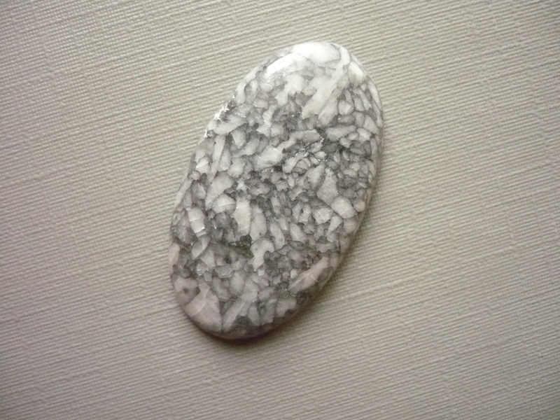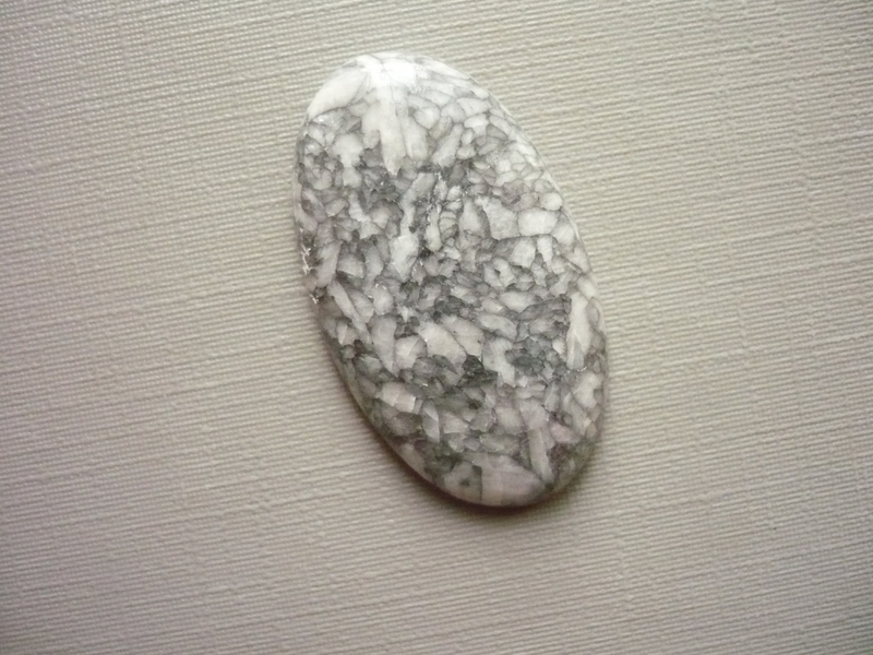Kabošon - pinolit. Říká se mu také borovicový kámen. Je to směs dolomitu, magnezitu a grafitu. Rozměry 33 x 19 x 4 mm. Původ Rakousko. Kupujete vyfocený kousek.