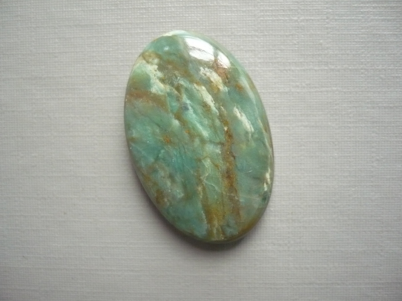 Kabošon - prasem (africký jadeit). Rozměry 29 x 19 x 6 mm. Vhodný pro cínování, wire-wrapping.. Původ Jižní Afrika.