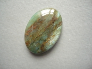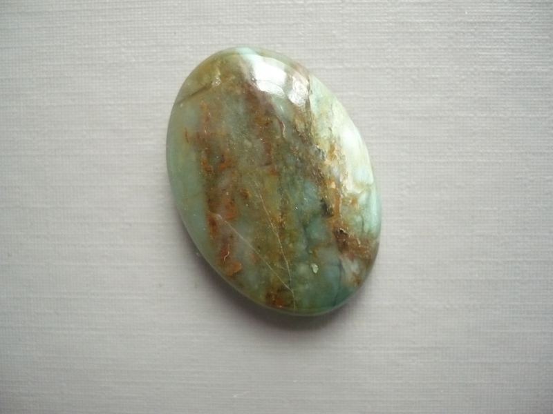 Kabošon - prasem (africký jadeit). Rozměry 28 x 20 x 7 mm. Vhodný pro cínování, wire-wrapping.. Původ Jižní Afrika.