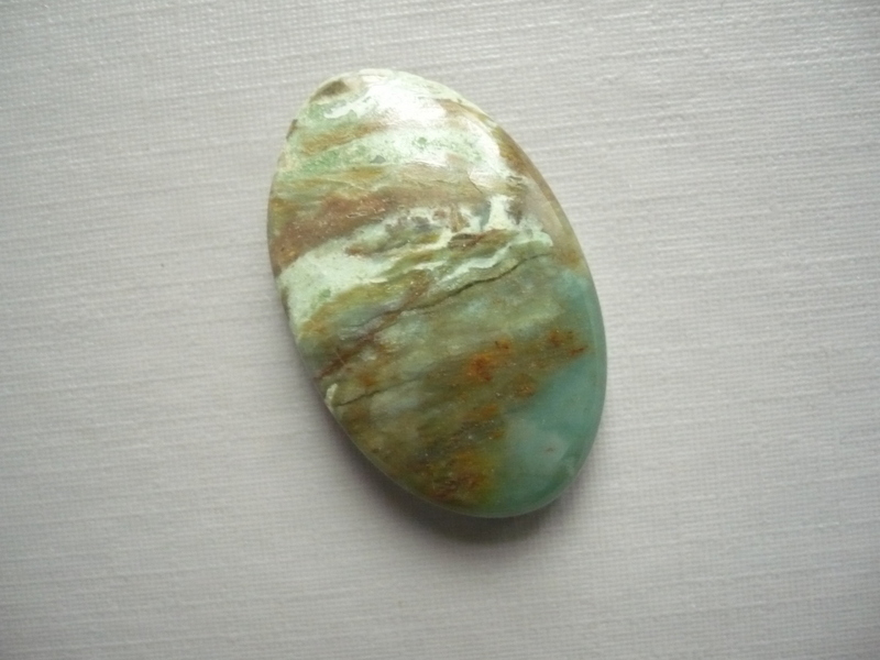 Kabošon - prasem (africký jadeit). Rozměry 29 x 18 x 7 mm. Vhodný pro cínování, wire-wrapping.. Původ Jižní Afrika.