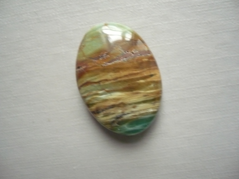 Kabošon - prasem (africký jadeit). Rozměry 25 x 18 x 7 mm. Vhodný pro cínování, wire-wrapping.. Původ Jižní Afrika.