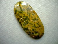 Kabošon - jaspis oceánový, top kvalita! Rozměry 47 x 22 x 5 mm. Vhodné pro cínování, obšívání... Kupujete tento konkrétní kousek.