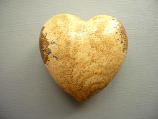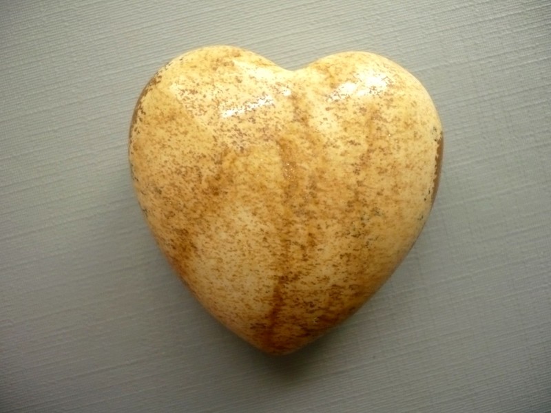 Nevrtané 3D srdíčko - jaspis pískový. Rozměry 40 x 39 x 20 mm. Kupujete vyfocený kousek. Leštěné, výborná kvalita.