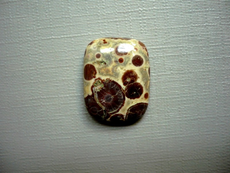 Kabošon přírodního jaspisu (poppy asteroid). Rozměry 19 x 15 x 5 mm. Vhodné pro cínování, obšívání... Původ Indie.