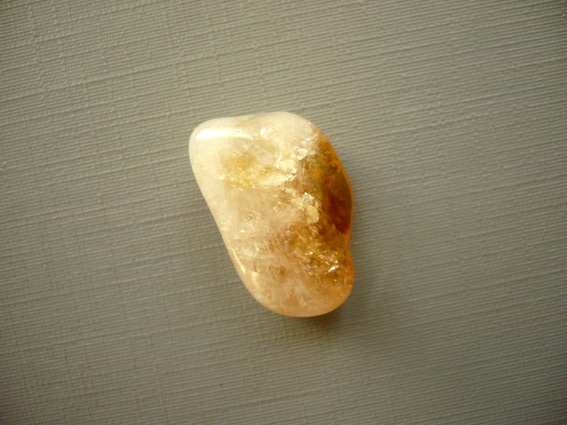 Tromlovaný kámen - citrín. Rozměry 23 x 15 x 11 mm. Je to přepalovaný ametyst. Původ Brazílie.
