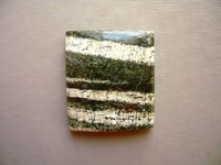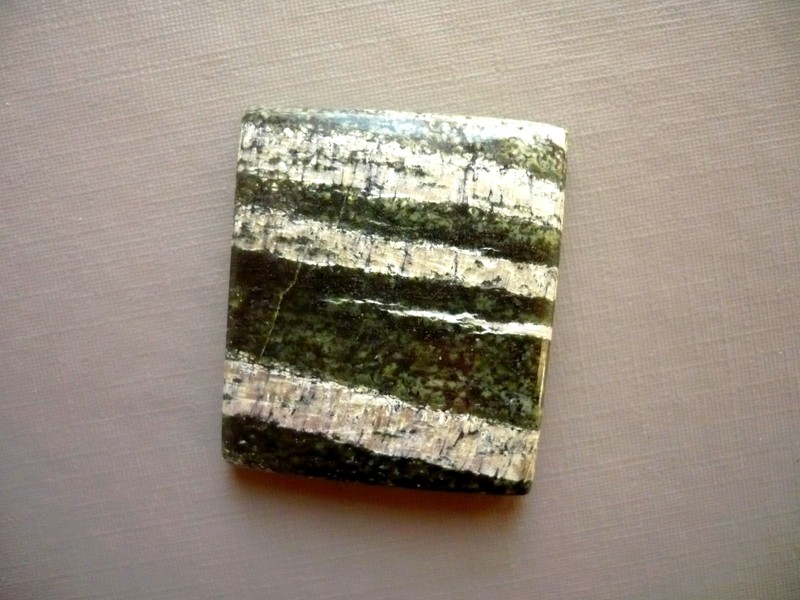 Nevrtaný tvar - kabošon serpentinitu (chrysotil). Rozměry 32 x 27 x 7 mm. Vhodné pro cínování, obšívání...