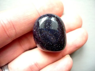 Tromlovaný kámen - avanturín modrý. Rozměry 27 x 23 x 17 mm. Tento kámen je synteticky vyrobený, jde o sklo. Říká se mu Noc Kaira.