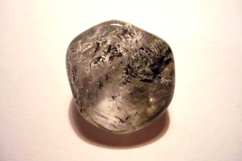 Tromlovaný kámen - křišťál s inkluzemi. Rozměry 28 x 26 x 16 mm.