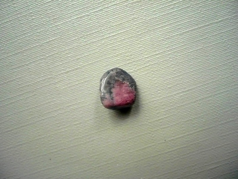 Tromlovaný kámen - růžový turmalín (rubelit). Rozměry 9 x 9 x 5 mm. Původ Pákistán.