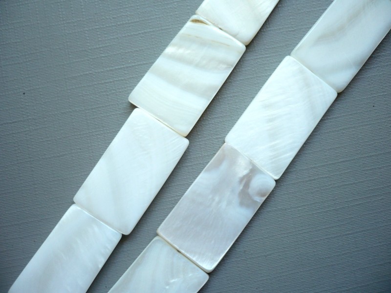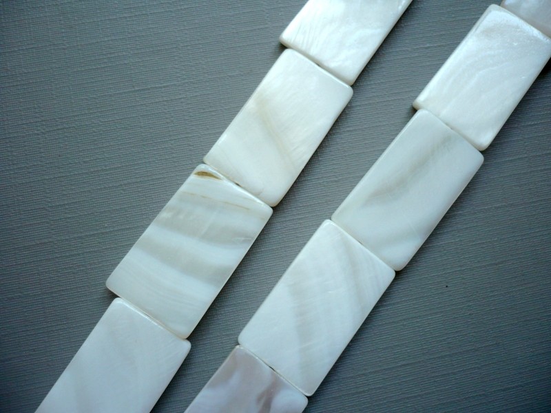 Perleťové korálky, vrtané. Velikost dílku cca 26 x 16 x 3 mm.