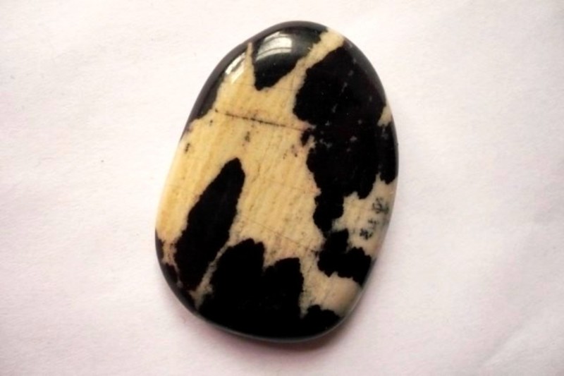 Tromlovaná placka - jaspis zebra. Rozměry 42 x 30 x 8 mm. Kupujete vyfocený kousek. Leštěné. Vhodné pro cínování, obšívání..