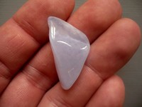 Tromlovaný kámen - chalcedon modrý. Rozměry 30 x 15 x 9 mm. Naleziště Malawi. Chalcedon - povzbuzuje optimismus a dobou vůli, stimuluje schopnost učení. Zahání strach, smutek a deprese.