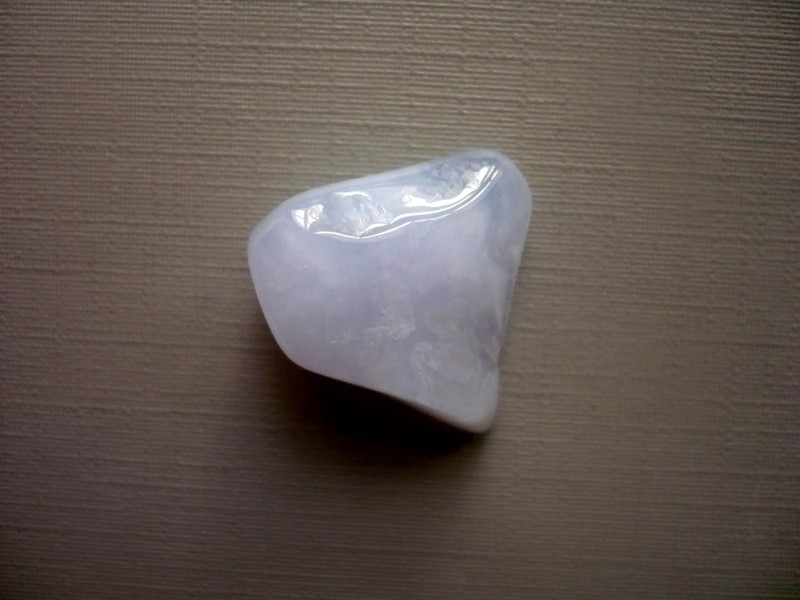 Tromlovaný kámen - chalcedon modrý. Rozměry 27 x 16 x 10 mm. Naleziště Malawi. Chalcedon - povzbuzuje optimismus a dobou vůli, stimuluje schopnost učení. Zahání strach, smutek a deprese.