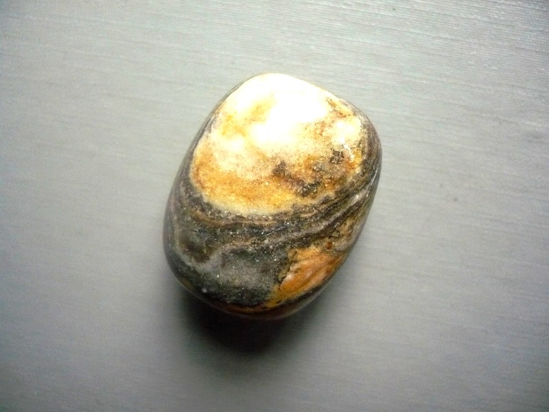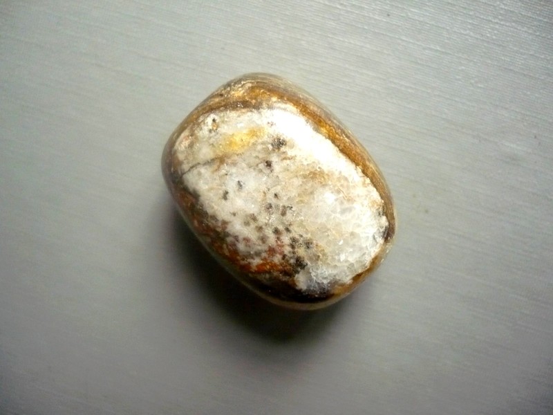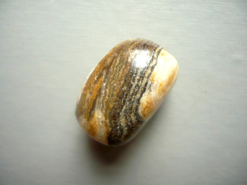Tromlovaný kámen - aragonit (onyx hnědý). Rozměry 29 x 23 x 18 mm. Původ Pákistán.