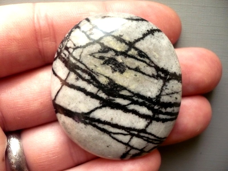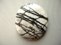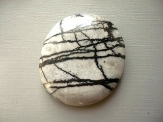 Tromlovaná placka - jaspis písmenkový. Rozměry 46 x 41 x 10 mm. Kupujete vyfocený kousek. Leštěné. Vhodné pro cínování, obšívání, wire-wrapping..