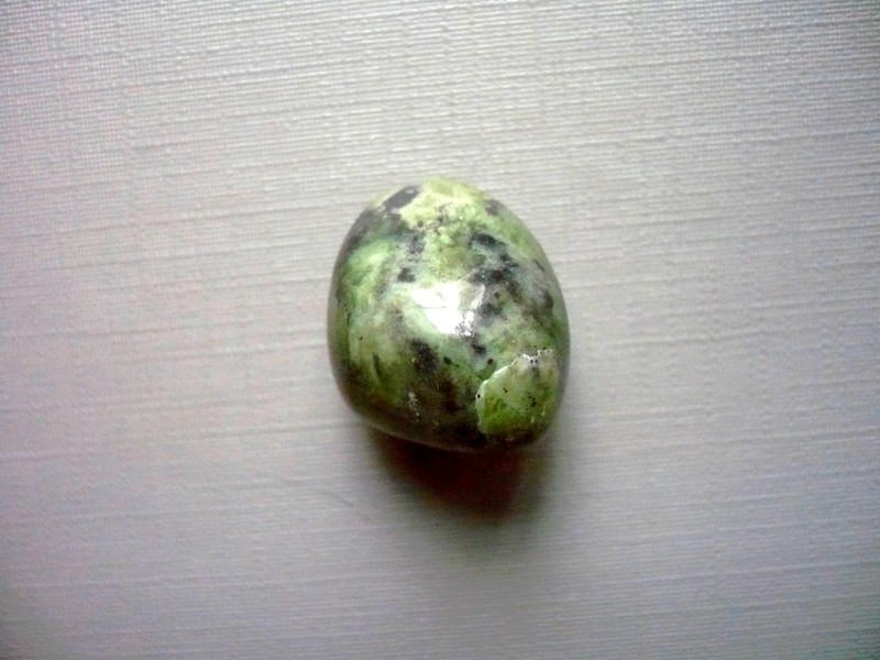 Tromlovaný kámen - serpentinit. Rozměry 21 x 17 x 15 mm. Vhodný pro cínování, wire-wrapping.. Původ Peru.