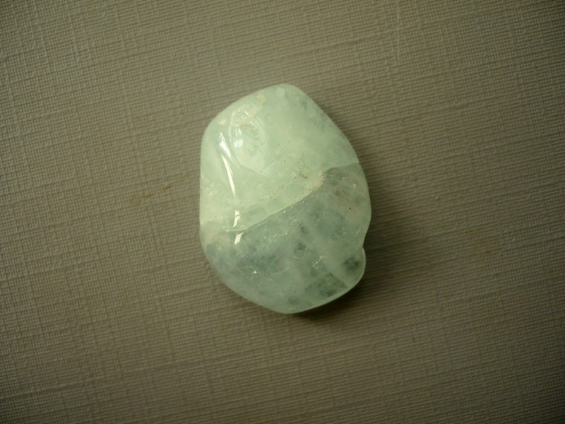 Tromlovaný kámen - výběrový akvamarín. Rozměry 24 x 18 x 9 mm. Původ Brazílie. Akvamarín - nachází se v odstínech mořské vody, odtud pochází i jeho název. Patří do skupiny drahých kamenů berylů, modrou barvu způsobují železité sloučeniny. Zvyšuje odolnost dýchacích cest, zmírňuje alergie a při přiložení na víčka pomáhá i při bolestech očí. Snižuje bolesti v krku, uklidňuje nás i okolí.