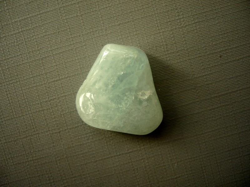 Tromlovaný kámen - výběrový akvamarín. Rozměry 21 x 20 x 8 mm. Původ Brazílie. Akvamarín - nachází se v odstínech mořské vody, odtud pochází i jeho název. Patří do skupiny drahých kamenů berylů, modrou barvu způsobují železité sloučeniny. Zvyšuje odolnost dýchacích cest, zmírňuje alergie a při přiložení na víčka pomáhá i při bolestech očí. Snižuje bolesti v krku, uklidňuje nás i okolí.