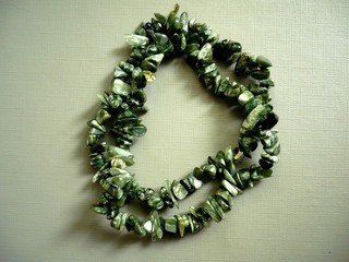 Minerální zlomky - serafinit v délce 18 cm, navlečeno na pružence. Každý zlomek má svou originální kresbu. Tyto jsou v perfektní kvalitě.