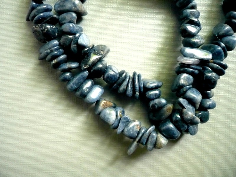 Minerální zlomky - modrý safír - v délce 18 cm, navlečeno na pružence. Každý zlomek má svou originální kresbu.